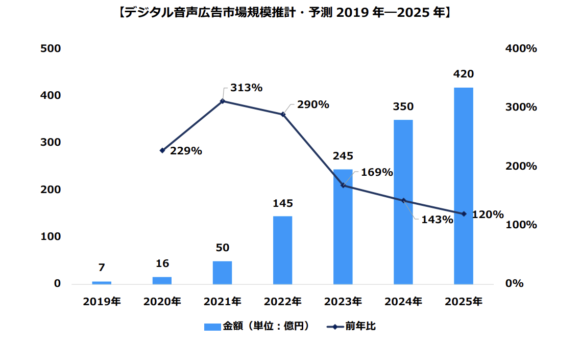出典:株式会社デジタルインファクト「デジタル音声広告市場規模推計・予測2019年ー2025年」